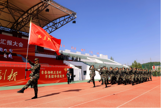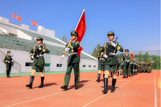 高明宇代表学校向承训部队赠送锦旗,对全体教官的严格施训和辛勤付出表示衷心感谢。历时三周的军事训练中,2025级(92期)学生完成了单兵队列、纪律条令等十大科目的“通识通训”,掌握了基本军事技能,强化了纪律意识;通过六公里野外拉练,以及“防空紧急疏散”“染毒地带穿越”等实战化演练,锤炼了意志品质,体现出“流血流汗不流泪,掉皮掉肉不掉队”的军人作风。
