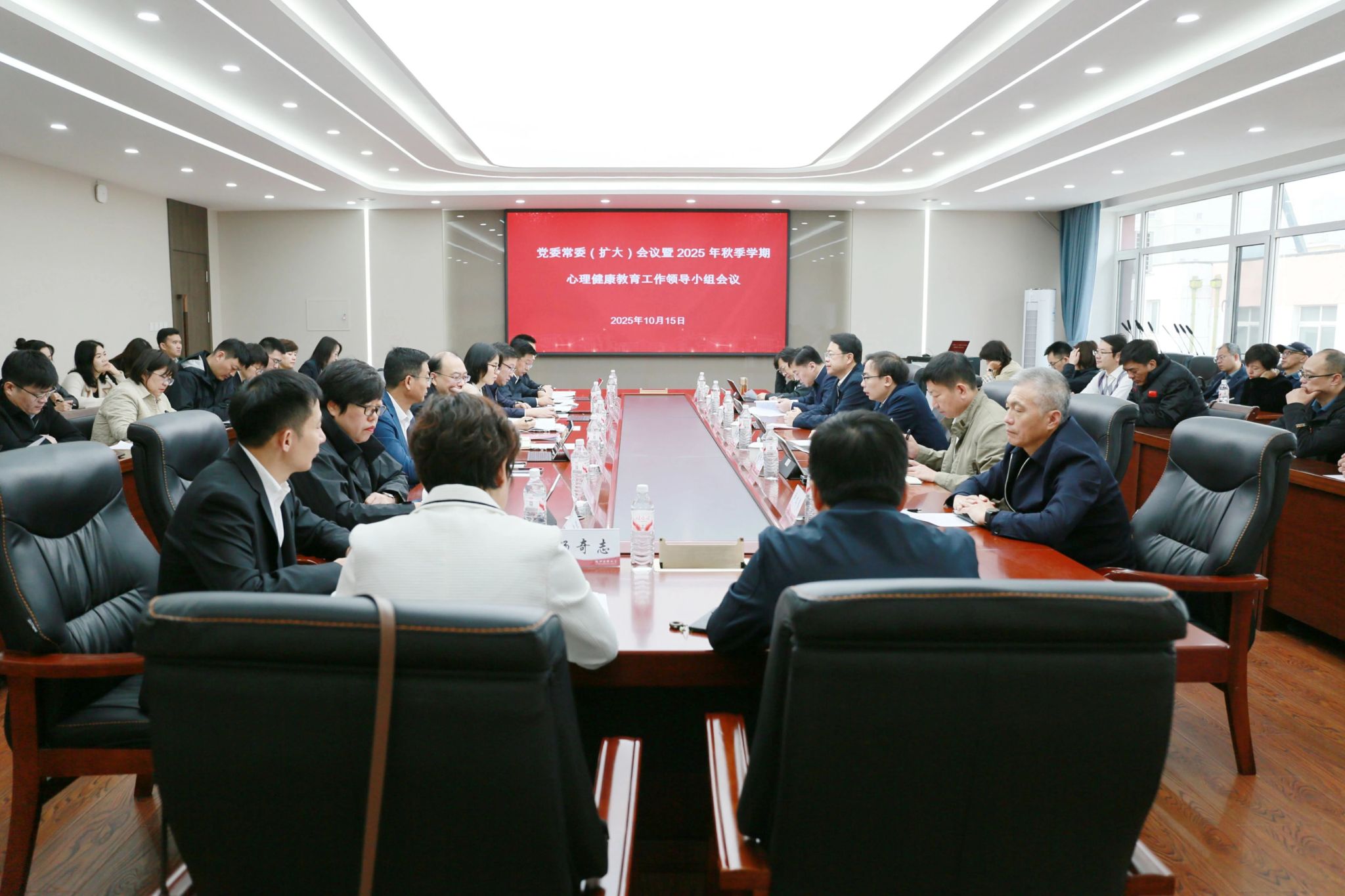 10月15日,沈阳药科大学召开党委常委(扩大)会议暨2025年秋季学期心理健康教育工作领导小组会议,分析研判当前学校学生心理危机预防干预工作形势,谋划部署进一步做好心理育人工作思路与措施。校党委书记高明宇主持会议并讲话,校党委副书记、牵头负责学校行政工作的副校长齐炼文出席会议并进行工作部署,学校领导班子成员关雪峰、李可强、宋少江、卢文春出席会议,党委常委,各部门负责人,各学院党政负责人参加会议。