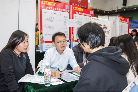 双选会现场,学校领导班子成员与恒瑞医药、正大天晴、东北制药等企业的代表进行了深入交流,倾听企业对毕业生的专业素养、实践能力等方面的评价与期待,并表示以双选会为契机,深化校企合作,建立长期稳定的人才输送与联合培养机制,共同为医药卫生行业培育高素质人才。