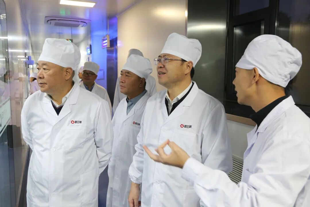 调研期间,高明宇一行走进哈三联的310数智化大输液车间,全方位了解企业文化、生产规模与运营情况。