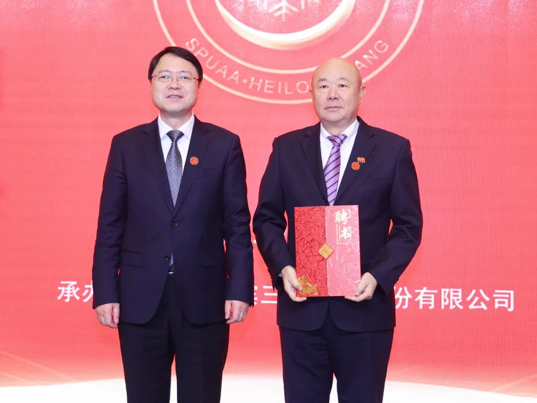 高明宇为秦剑飞颁发名誉会长聘书,为黄柏林颁发会长聘书。一纸聘书,托付的是信任,更是延续温情、共谋发展的嘱托。