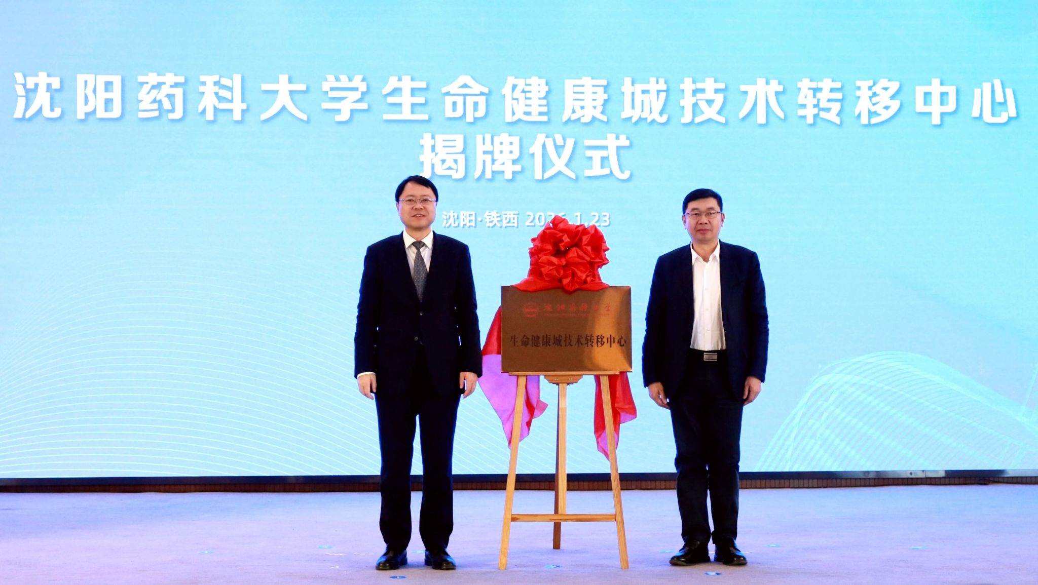 立足学校优势资源,擘画校地协同赋能生命健康产业高质量发展的新蓝图。1月23日下午,“汇聚京沈动能 共绘健康未来”沈阳国际生命健康城建设方案发布会暨沈阳·中关村京沈协同创新合作交流活动在沈阳·中关村智能制造创新中心成功举行。我校党委书记高明宇致辞并为“沈阳药科大学生命健康城技术转移中心”揭牌。