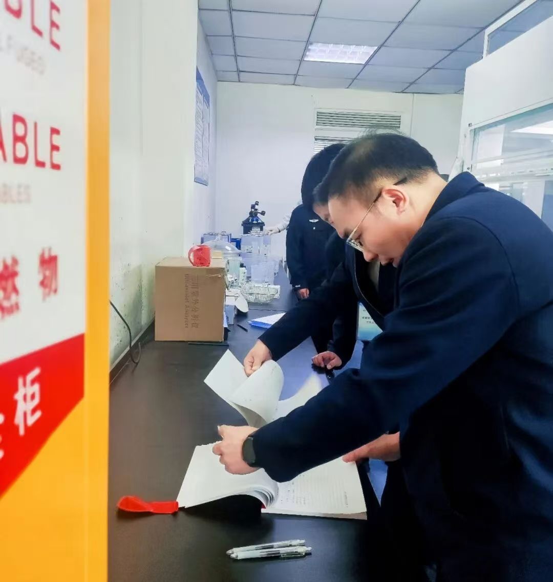检查期间,检查组逐一走访药物研究院各科研实验室,重点查看科研房屋实际使用情况,详细核查各类危险化学品的存储条件与日常管理,仔细核对药品出入库记录和危险化学品使用台账,并叮嘱实验人员必须严格遵守危化品存储与使用规范,确保废液合规存放、实验期间全程值守,坚决守住实验室安全底线。