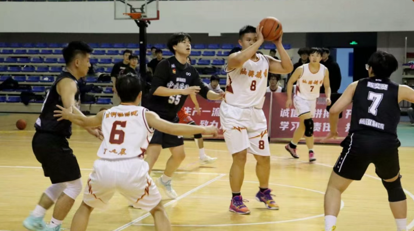 生命科学生物制药学院·临床药学院联队攻势强劲,5号队员突破上篮、三分远投、背打得分样样精通,还盘活全队进攻;1号队员精准传球搭配关键得分,多次背打助攻队友;8号队员背打上篮、6号队员果断出手、7号队员积极冲击篮筐,队员们进攻端套路多样;防守端,他们积极协防、守护篮板。赛场上,队员们用汗水诠释了“不留遗憾”的信念,用拼搏定义了热血青春。